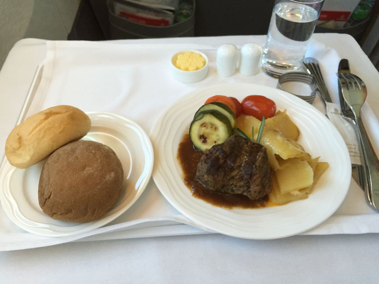 ビジネスクラスって。。。お食事の量、多いですね。汗
