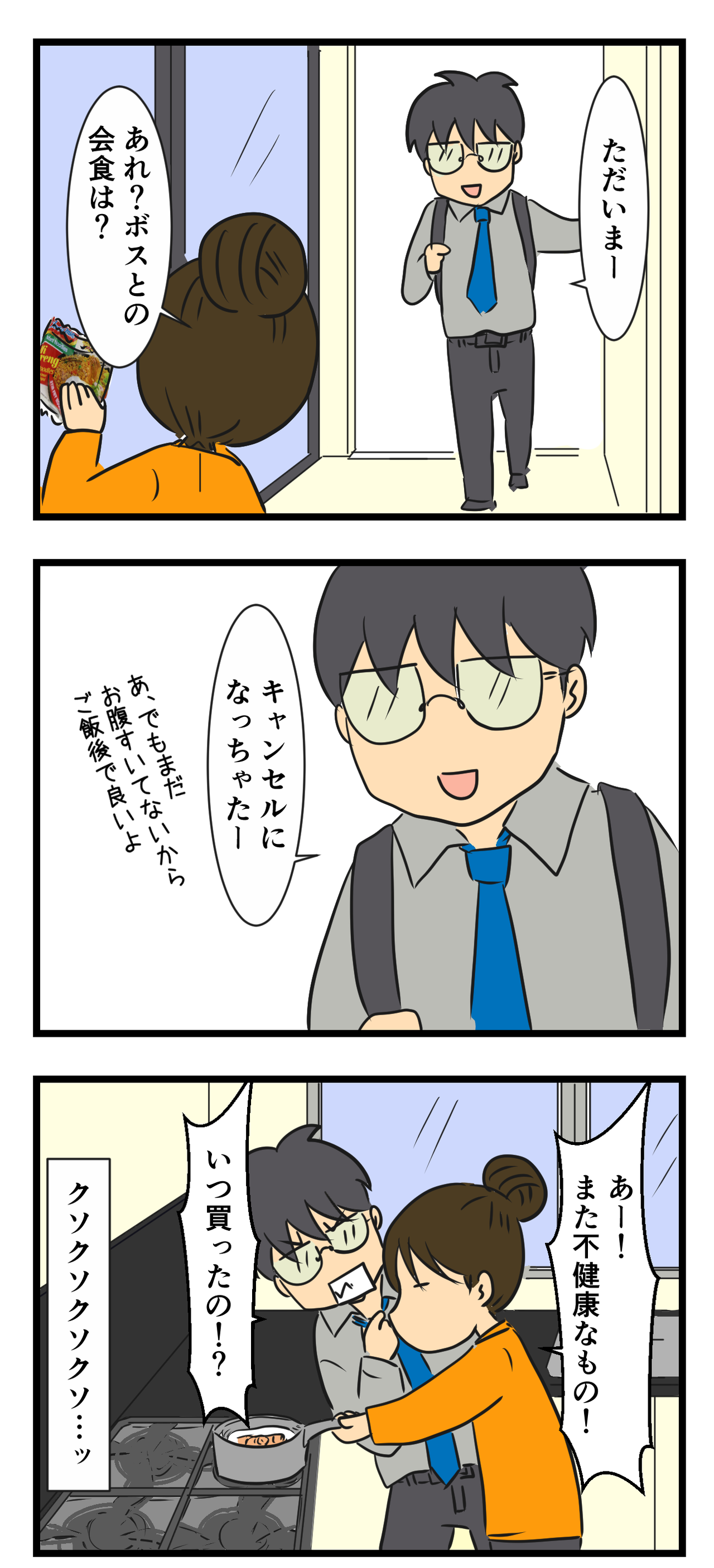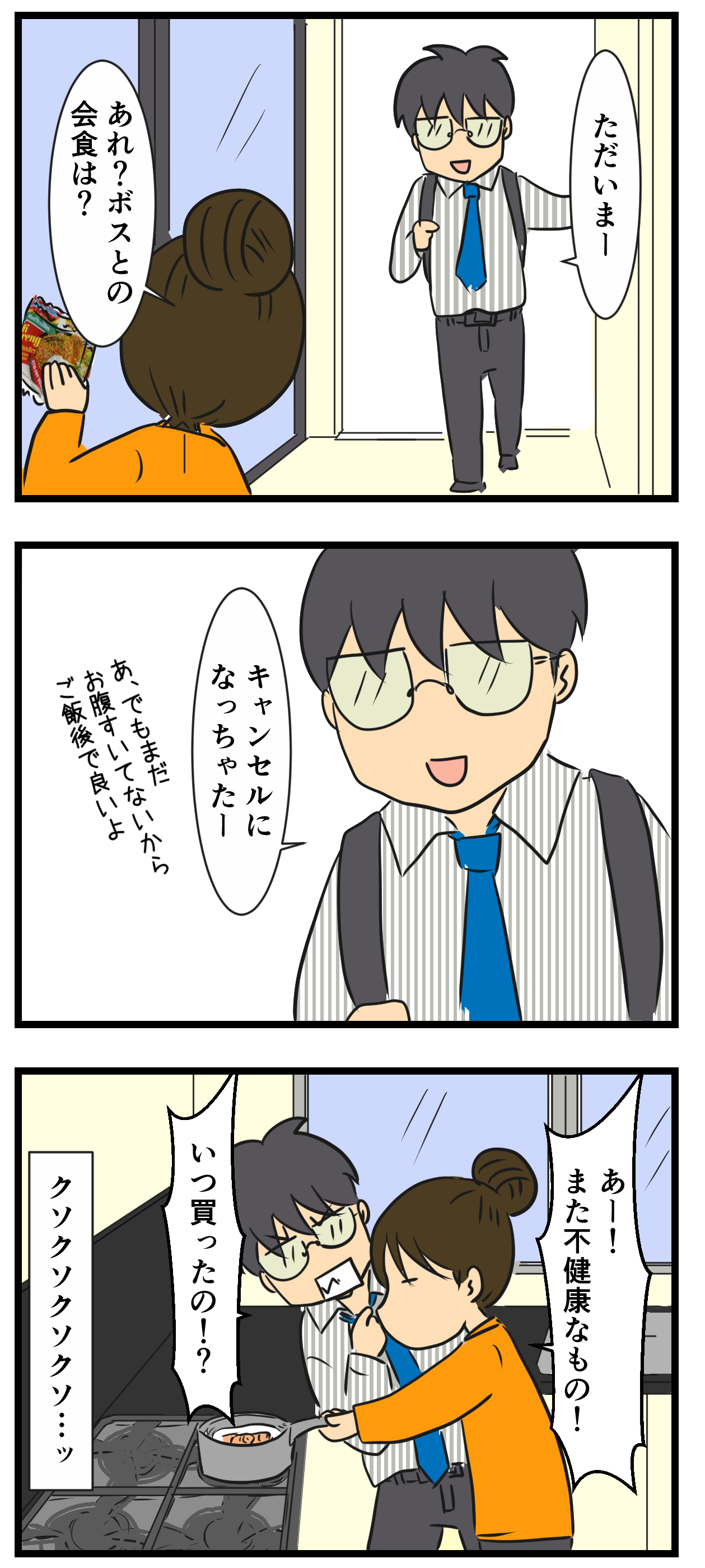 あと逆にご飯用意してたら「会議のお弁当あまったから」って持って帰ってきてご飯必要なかったり。