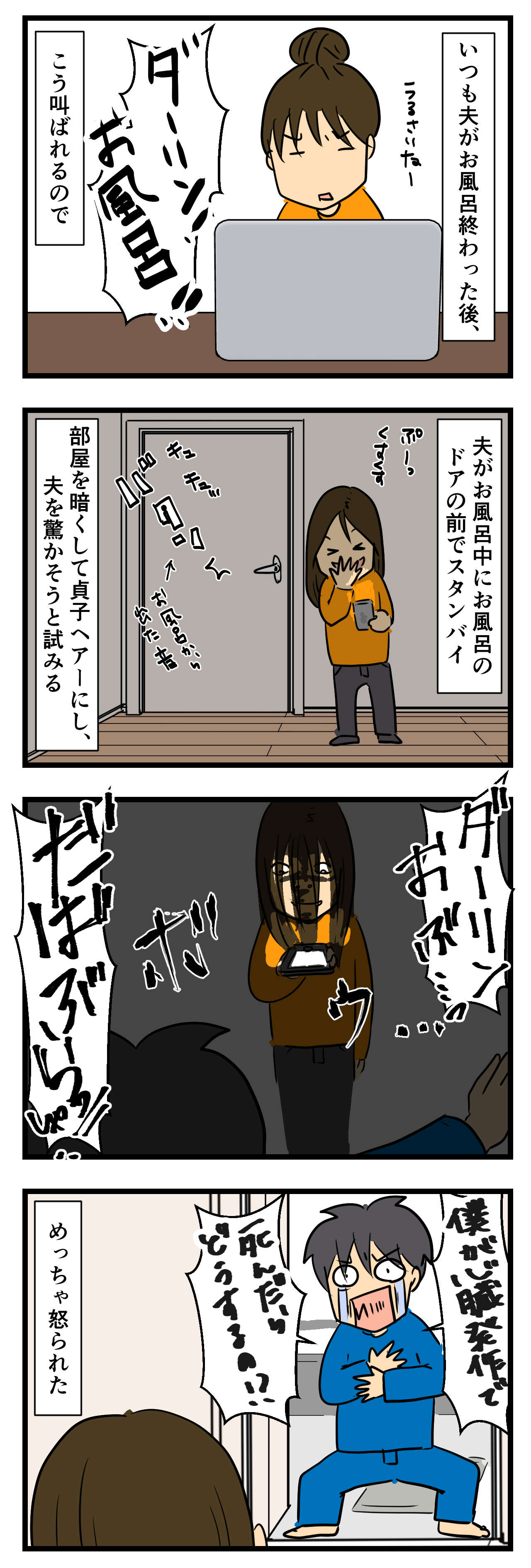 驚かす 2016年03月24日 夫との出会いはこちらいっつもオーバーなんだからッ↑よろしければ、ポチッとお願いします↑↑これをクリックでLINEの読者登録します↓50%ブログ未収録!↓ 「夫婦の日常」カテゴリの最新記事 < 前の記事次の記事 > コメント コメント一覧 (14) 1. 田村宗隆 2016年03月24日 09:03 平和な日常ですな。夫婦生活はこうでなきゃ 2. みき(在韓) 2016年03月24日 09:04 (*`艸´) おどろかし大成功~~~❤ 3. ✿ぽて ららん✿ 2016年03月24日 09:19 ダメだよ。ムッキーちゃん。 お風呂のあとは血圧上がってるからね。さらに上がっちゃうよ。 そうだなぁ~。朝の血圧下がってる時ならいいんじゃない? ・・・(。´・ω・)ん? チガウか? 4. ななっし〜 2016年03月24日 10:18 Jさん、心臓を鍛えなな。。。 5. まぁ 2016年03月24日 11:09 怖い怖い!Σ( ̄□ ̄;) 私もビックリするかも(>_<) ラブラブですなぁ♪ 私もやってみます (^w^) 6. ぶりじん 2016年03月24日 11:15 ドッキリ大成功! あのPOP自作しましょうw 賑やかな家庭はいいですねw 憧れますw 7. あか男 2016年03月24日 12:21 ハハハww いいですね〜面白いww でも、もう少し高齢になったら、やらない方がいいかもww 8. ウインスペクター 2016年03月24日 12:27 自分男ですがダーリンさんに萌えですww 9. ゆぽ 2016年03月24日 15:37 Jさん…だばぶらっしゃ❗って何すか…( *´艸`) 10. 絵本大好き 2016年03月24日 17:16 ドッキリ大成功!! お風呂上りに、ムッキーさんを呼ぶだなんて、ある意味ムッキーさんお母さん?www 11. ゆえじ 2016年03月24日 19:36 J氏驚き方wwww 広東語ですかね(笑) たぶん照明と髪型だけじゃなくて、 ムッキーさんの表情もまじで凄かったんだと想像してます(´∀`) 12. りっちゃん 2016年03月24日 23:12 いえいえ、お風呂上がりは血圧は下がってますよ。だからばっちり大丈夫です。 v(^o^)ふふふ 13. A☆K 2016年03月24日 23:30 そらビビるわ、昔婆ちゃんが夜中に電気も点けずトイレから出て来た時は心臓止まるかと思ったε-(´∀`; ) 14. ムッキー 2016年03月25日 00:03 皆様コメント有難うございます…!! 私たち明日いよいよ結婚式…! 早速夫が無事に結婚式出来るのか不安で泣いてましたよ…! もし時間会ったら写真か何か載せますねー!