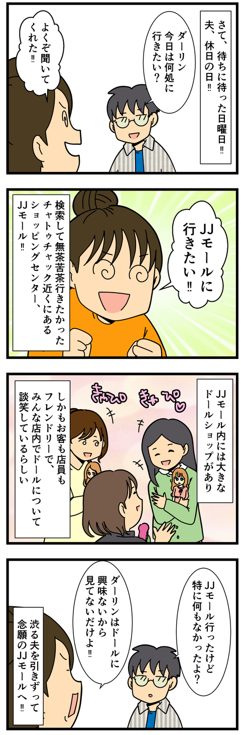 ドールショップを求めて…in バンコク 【あらすじ】新居買った!引っ越し作業中に漫画アニメオタクな夫はタイへ長期出張!私は一人暮らしを満喫していたが、ついに私もタイへ!タイ編目次はこちら!JJモール…仏像好きには堪らない場所かもしれないけれど、仏像と虫と魚以外は特に何もなし…何もなさ過ぎて写真1 ... 2019年01月22日 続きを読む