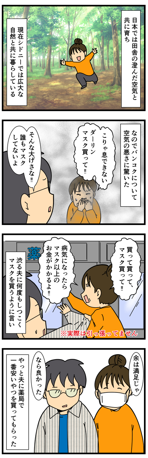 バンコクではマスク必須‼ 【あらすじ】新居買った!引っ越し作業中に漫画アニメオタクな夫はタイへ長期出張!私は一人暮らしを満喫していたが、ついに私もタイへ!タイ編目次はこちら!私がマスクをつけだした2日後くらいに道行く人みんなマスクつけだしてた!マスク文化のない西洋人の方々でさえも! ... 2019年01月26日 続きを読む