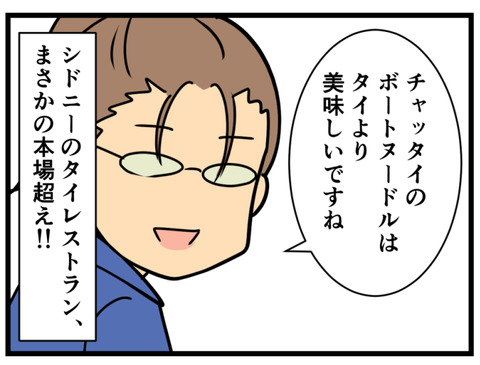 元旦は夫の同僚さんと過ごした! その7 【あらすじ】漫画アニメオタクな外国人夫とオーストラリアのシドニーで暮らしている!夫との出会いはこちらその1 その2 その3 その4 その5 その6 世界各国の料理が食べられるッ!高いけど…!!夫の同僚さんおすすめ、チャッタイはここ! メニューによると、ボートヌ ... 2023年01月08日 続きを読む