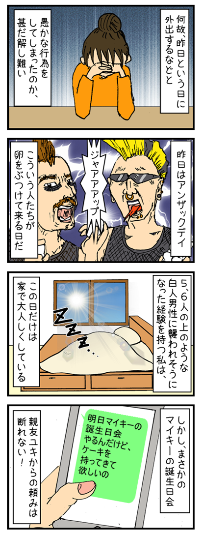 夫婦の一番長い日 その1 この物語の始まりはこちら!さて、2015年4月25日のお話をしようと思う。ちなみに、これを描いたのは昨日。まだ心の傷跡の深い日。ユキも恐ろしい目にあっているというのに、これが愛なのか…!!ちなみに、何故ANZAC Day=第一次世界大戦のガリポリの戦いで勇敢に戦ったオース ... 2015年04月27日 続きを読む