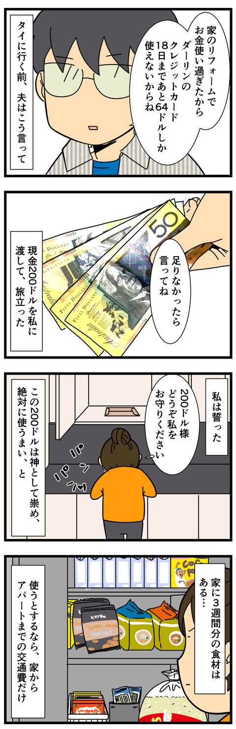 タイって家で作るより外食の方が安いの⁉ 夫との出会いはこちら引っ越し一覧はこちら【あらすじ】新居買った!引っ越し作業中に夫はタイへ長期出張!私は3週間一人暮らし後、夫を追ってタイへ!…と思ってたら夫シドニーに一時帰国するらしい!その後一緒にタイへ!!↑ここから3週間が経とうとしている…!!タイ、 ... 2018年10月19日 続きを読む