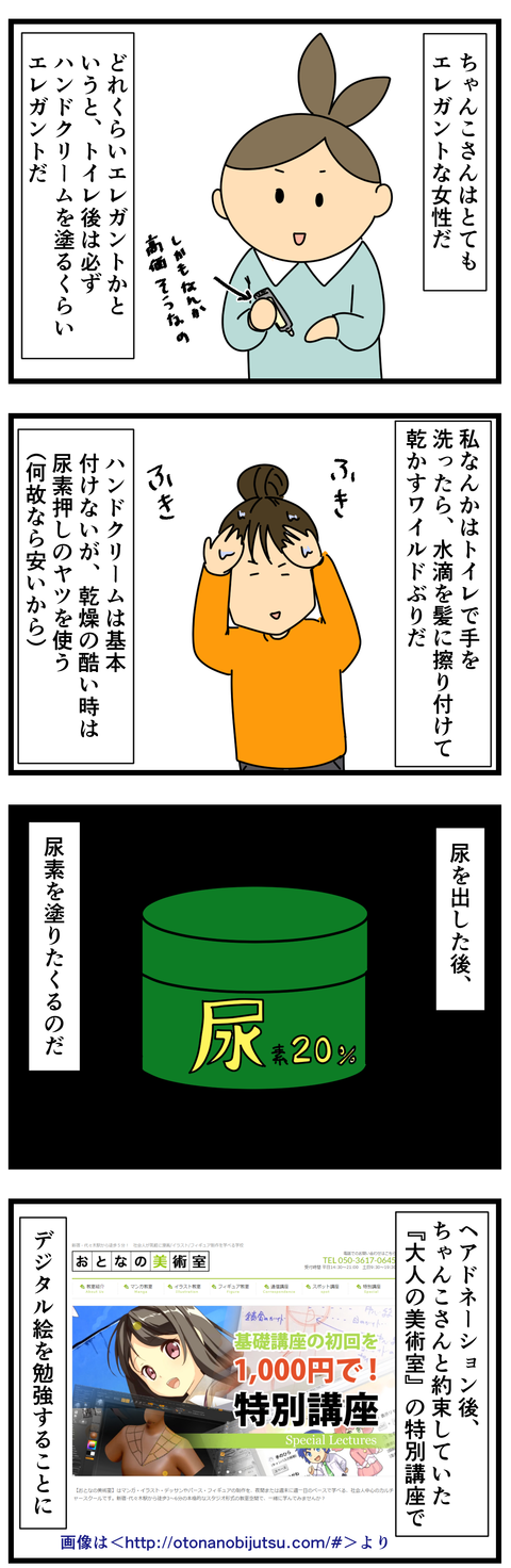 大人の美術室行ってきた! その1 夫との出会いはこちら※現在髪型おかっぱですが、自己紹介とかヘッダーとか描き直すの大変なので、今まで通りお団子ヘアで描きますー!※なんか私が尿の音を聞かせたい人みたいな、「俺の尿音を聞けええええ!!!」的な思想の持ち主みたいに思われてたらと思うと、とてもゾ ... 2018年01月06日 続きを読む