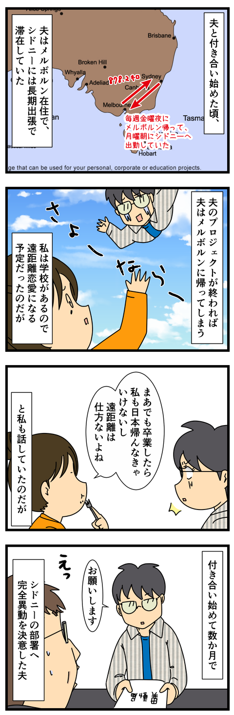 という訳で、無事にシドニー帰国した訳です 夫との出会いはこちらここからの続きといったら続きです!【あらすじ】アメリカ出張の夫についてって、帰る!めでたし、めでたし(にっこり)…と思いきや…いつも自分の思い通りにならないと泣いて聞かないらしく、(実際私たちもぐずってるところ何度も見た)これには従妹夫婦 ... 2017年06月12日 続きを読む